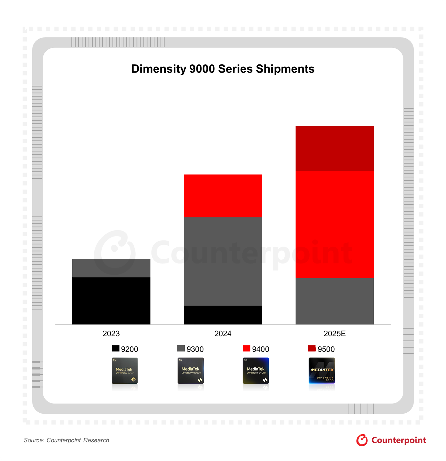MediaTek wyrobił sobie pozycję na rynku układów SoC dla smartfonów klasy premium. Od momentu wprowadzenia Dimensity 9000 na początku 2022 r. przychody MediaTek z tego segmentu wzrosły pięciokrotnie i według prognoz Counterpoint Research zawartych w raporcie „Global Smartphone SoC Revenue and Forecast Tracker by Model, Q2 2025” w 2025 r. osiągną 3 mld dolarów. Opierając się na tym sukcesie, MediaTek wprowadził na rynek swoją piątą generację układów SoC klasy premium, Dimensity 9500.